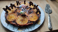 Quanto ao bolo, adorei! Ficou muito fofinho e para mim a laranja fica muito bem com o chocolate. Ficou baixinho porque a receita nao é muito grande e a minha form era grandita, pode-se sempre fazer numa forma mais pequena para ficar mais alto ou duplicar a receita. Eu até gostei dele assim, tipo tarte, e foi da maneira que cozeu num instante. Para mim a casca também fica bem, mas se por acaso não apreciar a casca da laranja, pode sempre descascar as laranjas antes de as cortar em rodelas. A repetir muitas vezes!