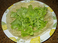 3. Disponha num prato o wrap de espinafres, cubra o centro com a alface partida aos bocados.
