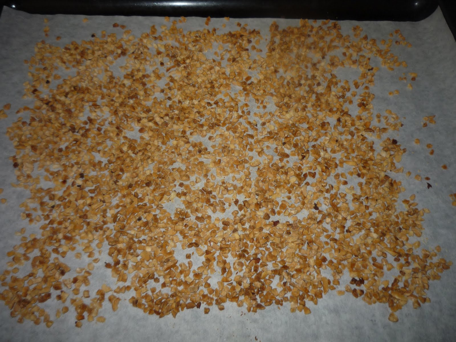 1. Coloque a amêndoa num tabuleiro forrado com papel vegetal e leve-a  a torrar um pouco no forno a 200º, até ficar lourinha. Retire e deixe arrefecer.