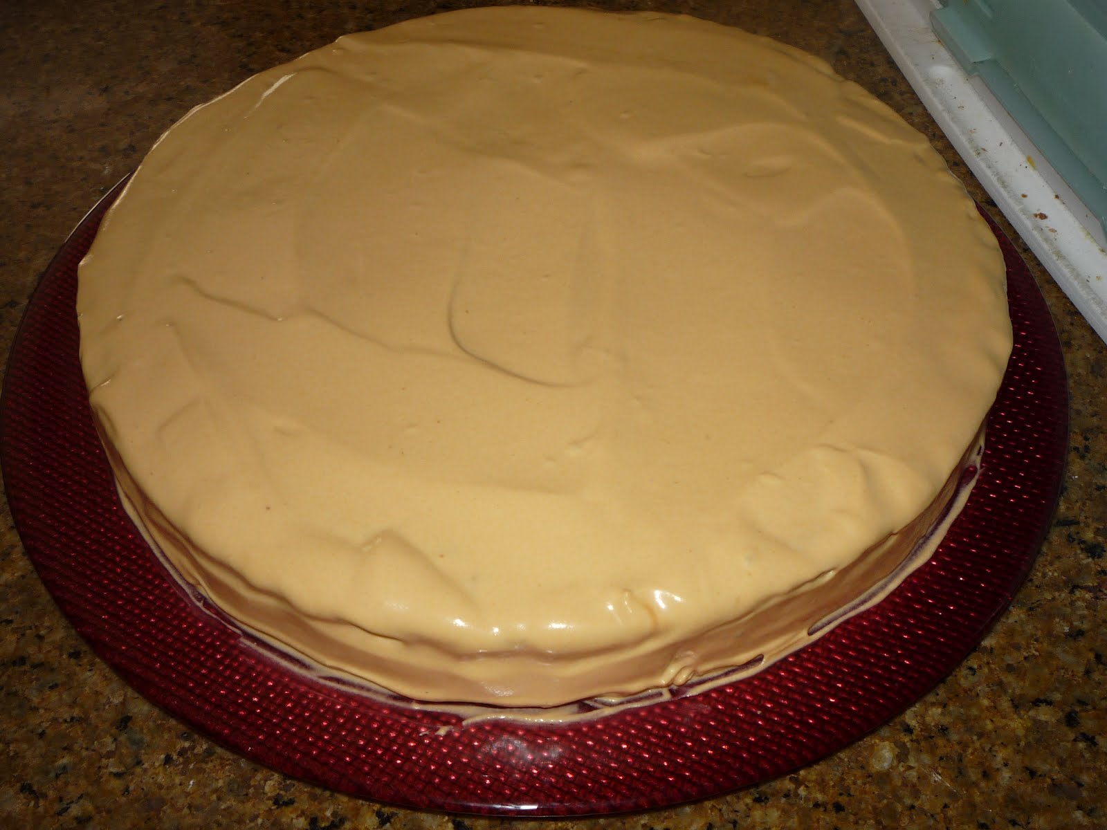 3. Prepare o recheio e cobertura. Bata as natas até ficarem fofas e envolva o leite condensado cozido. Leve ao frigorífico enqunto o bolo arrefece.