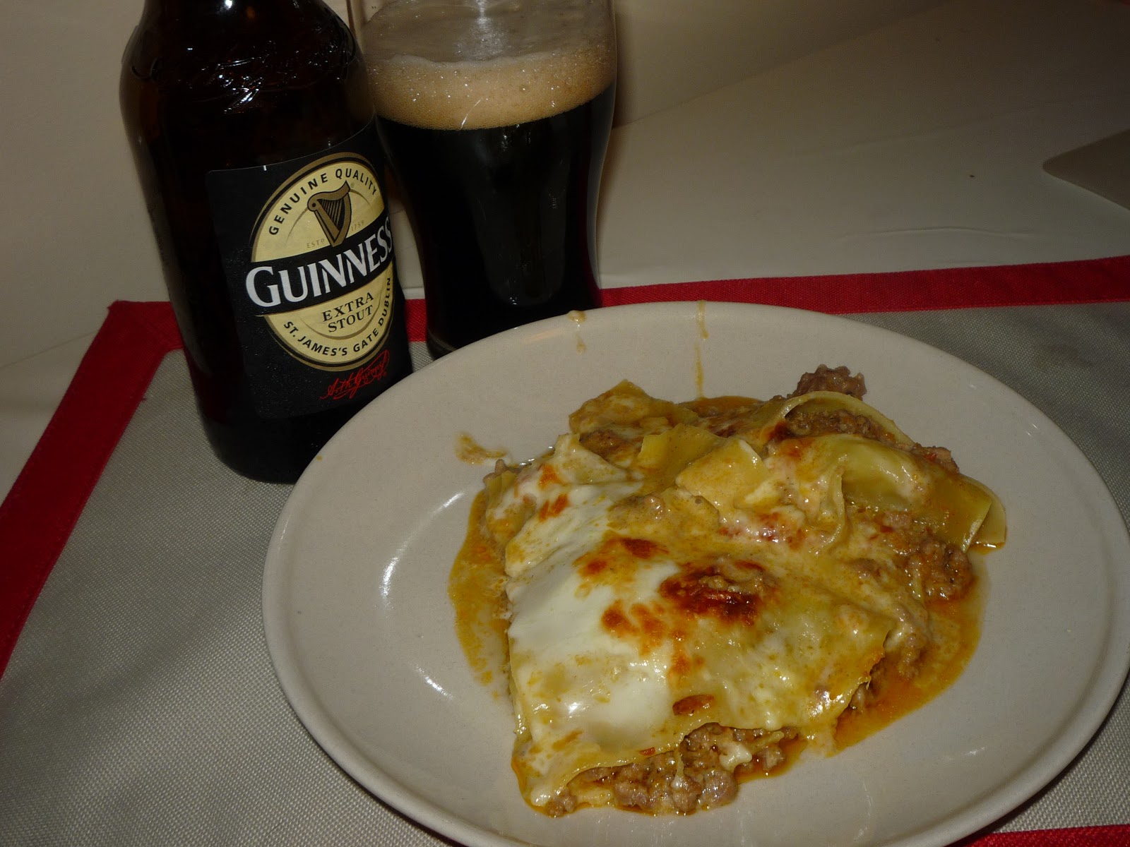 E para acompanhar uma Guiness... 1 Pint menos 50 g :) que foram usados para a lasanha.
