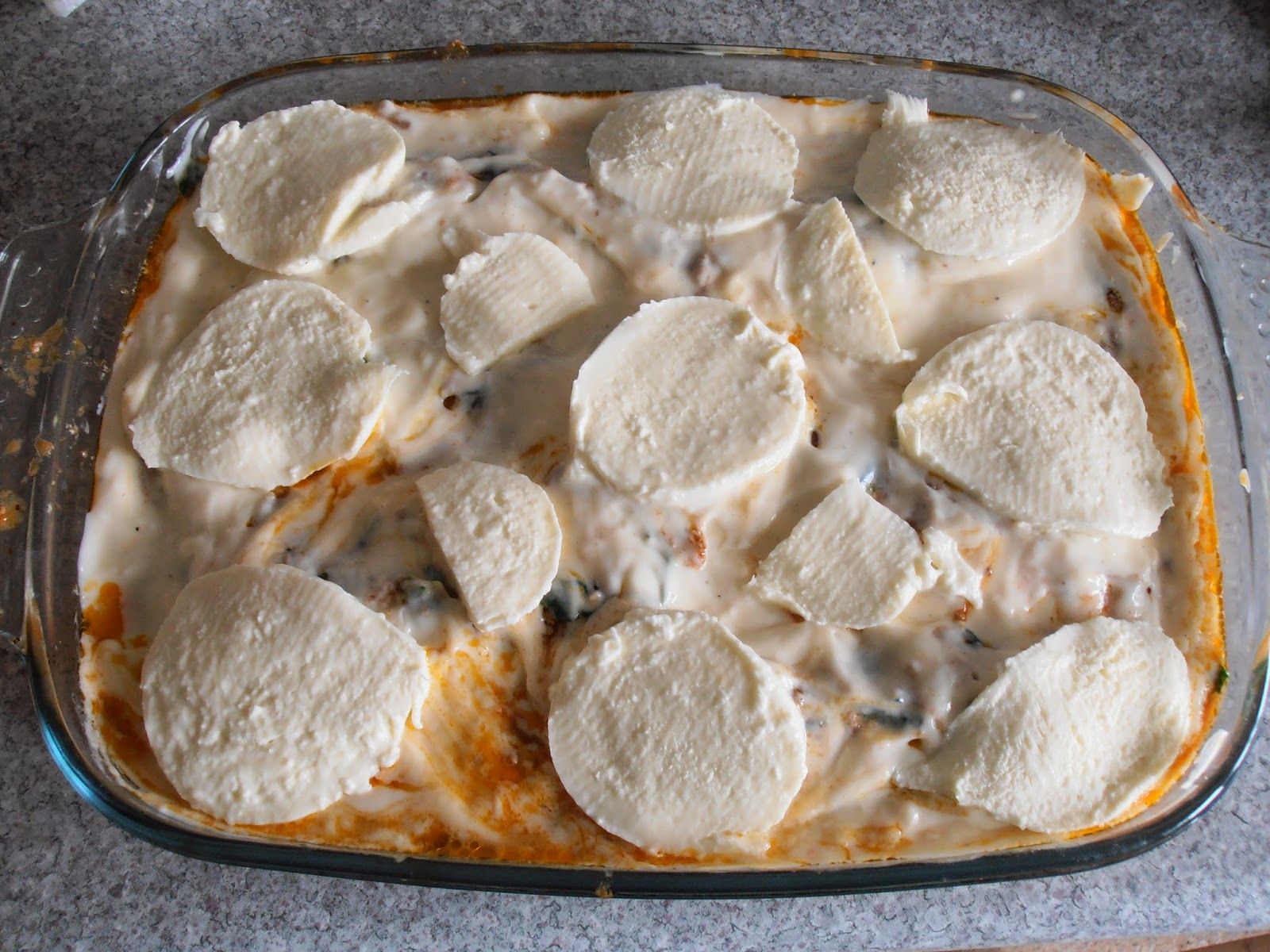 - Deite por cima o restante molho béchamel.