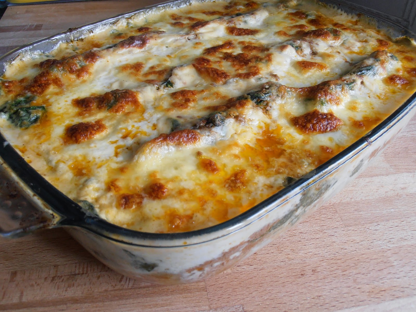 Ontem, Dia da Mãe, foi dia de almoço especial. Os filhos e o marido dizem que especial é tudo o que a mãe faz :) mas ontem tivémos estes canellonis que estavam mesmo bons. Os espinafres deram-lhe um toque diferente e tornaram os canellonis num prato um pouco mais saudável. O queijo mozzarella fresco também tem um gostinho diferente do outro seco ralado, ficou delicioso.