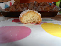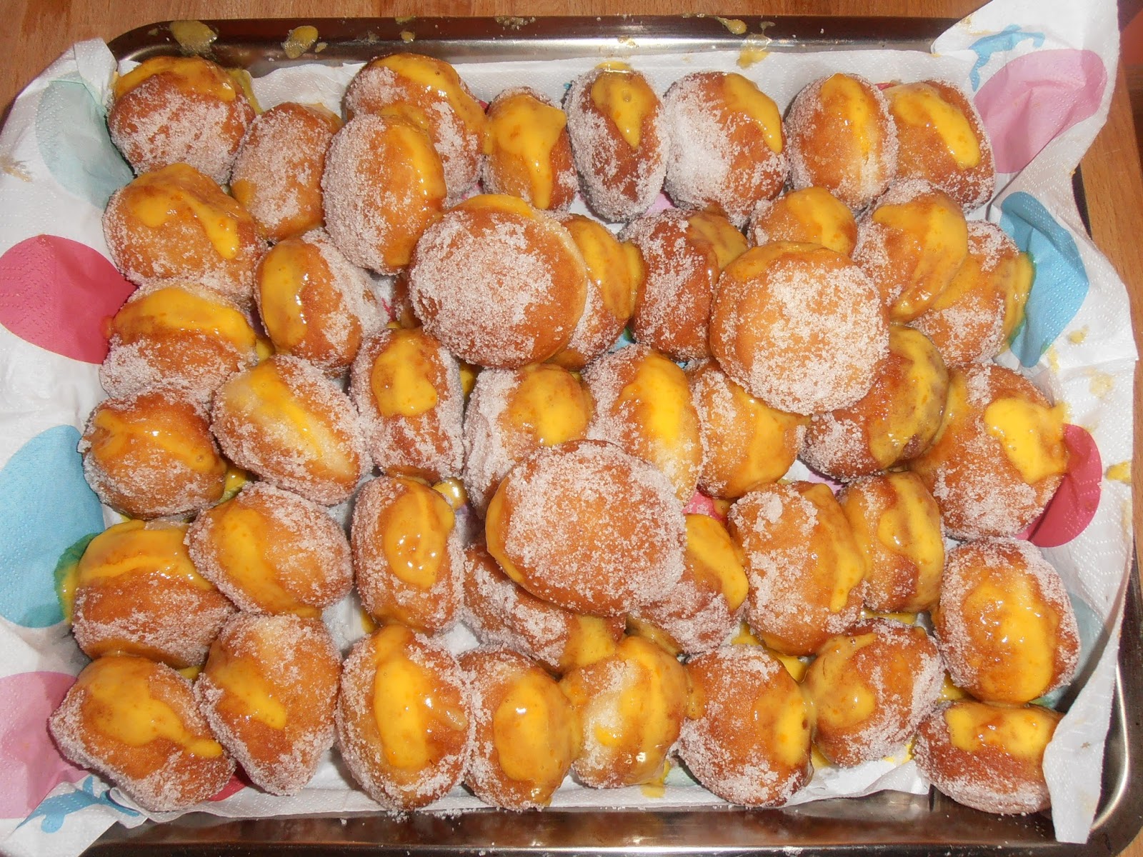 Eu sou um bocadinho chata com os cremes, os recheios... se é para fazer em casa, caseiros, têm de sair perfeitos, de comer e chorar por mais :) Fiz primeiro uma dose pequena de creme de pasteleiro para teste e depois porque achei que o sabor do creme para as bolas tinha de ser mais doce e saber mais a ovos acabei por fazer um doce de ovos (ovos moles) para misturar com o creme de pasteleiro. Ficou delicioso! E a massa das bolas também! Para uma próxima experimento fazer as bolas no forno e talvez recheá-las com creme de Nutella. Até já me estou a lamber, só de pensar :)