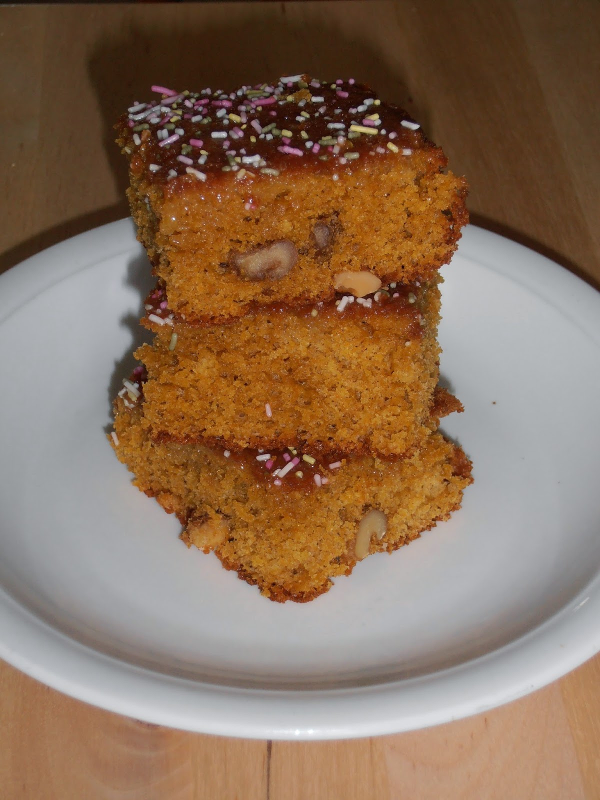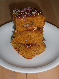 Quanto ao bolo, um dos meus preferidos com cenoura, canela, nozes e gengibre. Como ficou um bolo grande mas não muito alto, decidi apenas por o creme que seria para o recheio por cima do bolo, antes de aplicar a pasta de açúcar. O creme escolhido foi o leite condensado cozido, que completa o bolo na perfeição. Fica um bolo mesmo guloso!