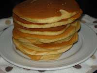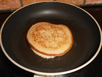 - Leve ao lume forte uma frigideira pequena untada com óleo. Deite um pouco da massa preparada, reduza para lume médio, deixe cozinhar um pouco e vire a panqueca com uma espátula assim que começar a fazer bolhas na superficie. Deixe cozinhar um pouco desse lado e retire.