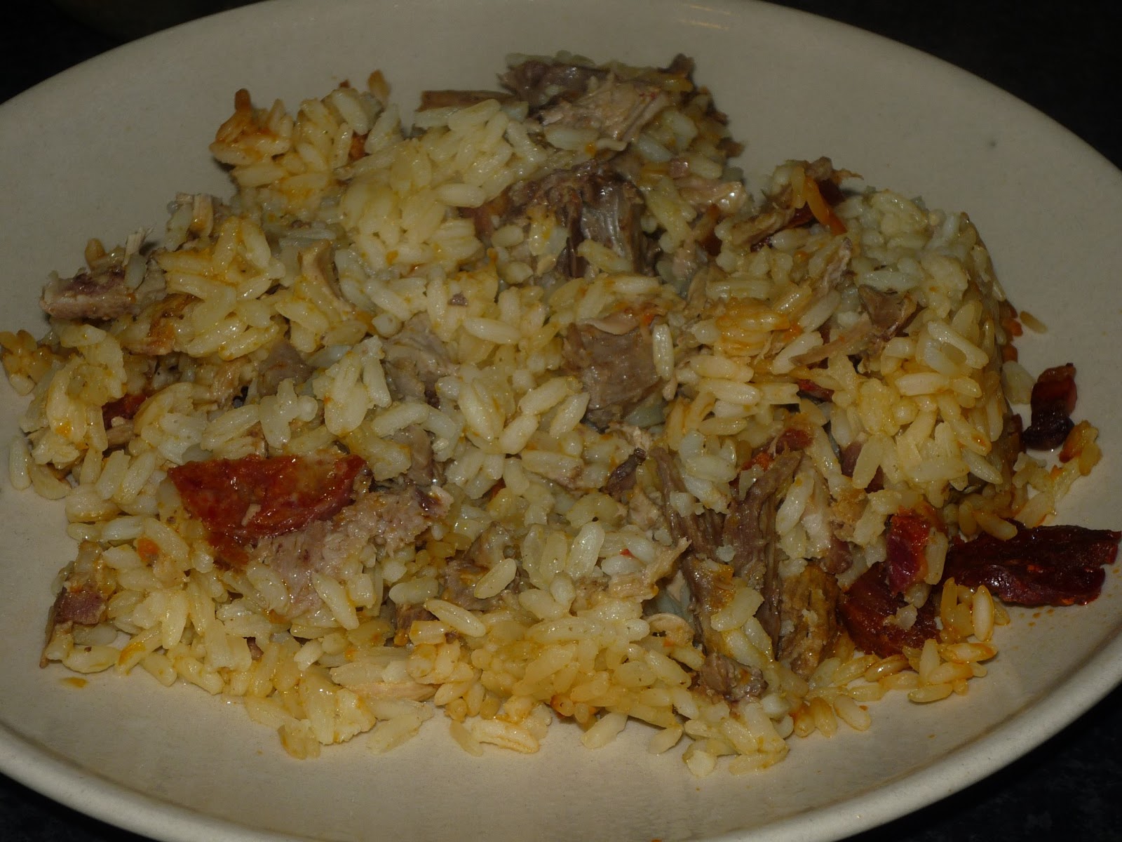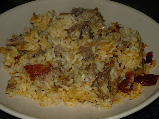 A prima da Patrícia, a Luisa, faz um arroz de pato divinal! Eu adoro arroz de pato e para mim não havia igual ao arroz de pato da minha mãe... até provar o arroz de pato da Luisa :) Para além do normal, o arroz, o pato, o bacon, etc, o arroz da Luisa tem cebola e fica tão bem, mas tão bem! Tive de experimentar algo do género. Não lhe cheguei a perguntar como é que ela o fazia, decidi tentar fazer algo parecido e deixem-me que vos conte que valeu a pena. Não volto a fazer o arroz de pato de outra maneira, a não ser que haja gente esquisita que não goste da cebola ;)
