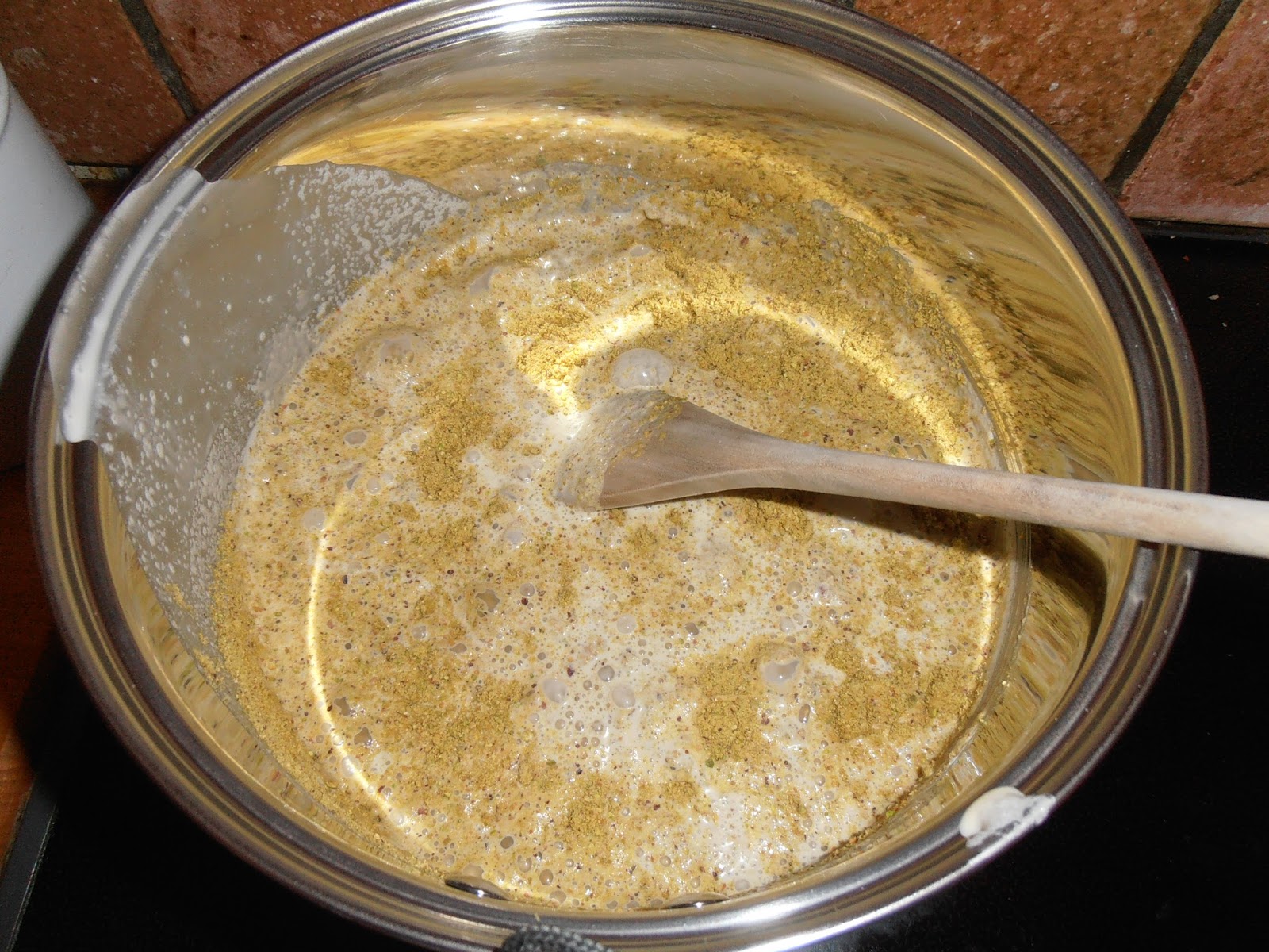 - Junte a farinha de trigo sarraceno, a ceveia, as nozes, os pistachios, a mistura de sementes e os arandos. Programe 1 min / inversa / vel 3.