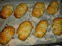 Ora aqui estão eles. Tal como falei, com a mesma receita da massa dos rissóis do livro base da Bimby, também se podem fazer outros salgadinhos deliciosos. Estes foi apenas para aproveitar a sobra da massa dos rissóis mas garanto-vos que vale mesmo a pena fazer uma dose de massa para cada um deles, para os rolinhos de salsicha e para os salgadinhos mistos. Para já deixo a receita de uma dose para os dois, apenas para vos abrir o apetite. Até acho que os de salsicha devem ficar bem num pauzinho de espetada, fica para uma próxima ;)
